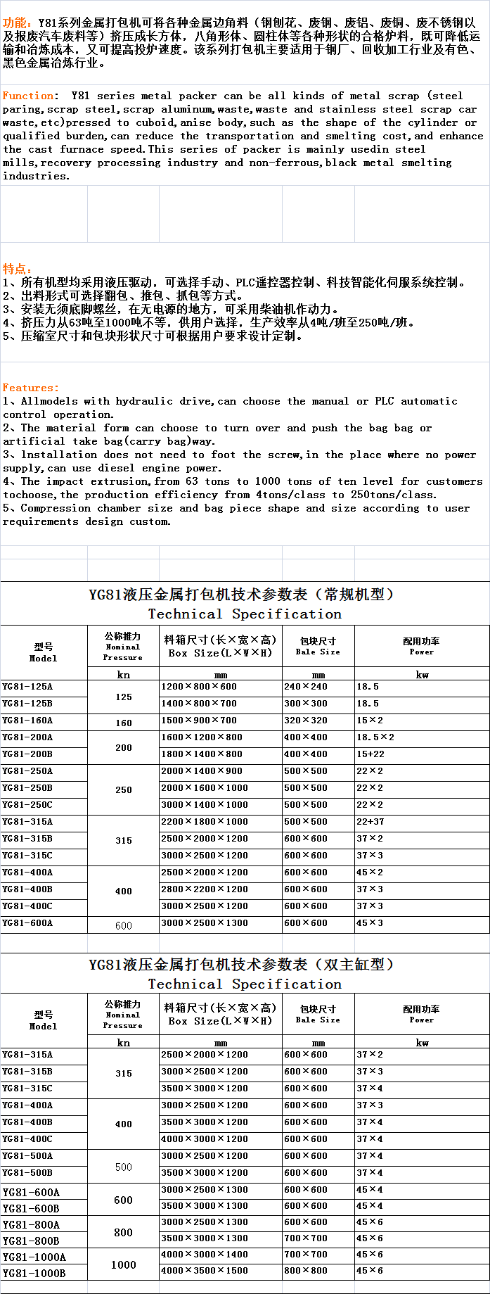 YG81智能高速雙主缸打包機發(fā)布日期:2019/9/27 15:59:26 所屬分類: 智能高速(高密度)雙主缸打包機系列 瀏覽次數(shù):4210次 上一個:YG81不銹鋼廢料扎包機 備注: 1、 產(chǎn)品目錄不包含所有產(chǎn)品,公司可以根據(jù)用戶的需求設(shè)計定制產(chǎn)品。 2、 產(chǎn)品技術(shù)參數(shù)如有變更,恕不另行通知,實際參數(shù)以合同約定為準(zhǔn)。 |